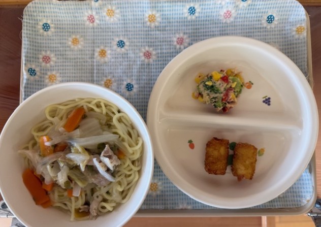 | 塩ラーメン ブロッコリーとコーンのツナマヨサラダ ハッシュドポテト |