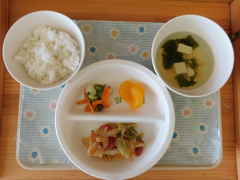 | 赤魚のちゃんちゃん焼き風 かぶときゅうりのさっぱり和え ごはん 味噌汁 みかん缶 |